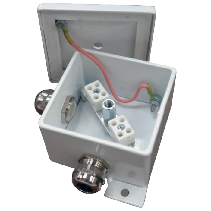 Внутри корпуса установлены керамические клеммные колодки, обеспечивающие соединение "под винт", и зажим заземления. Крышка соединяется проводом заземления с зажимом «РЕ» внутри корпуса.