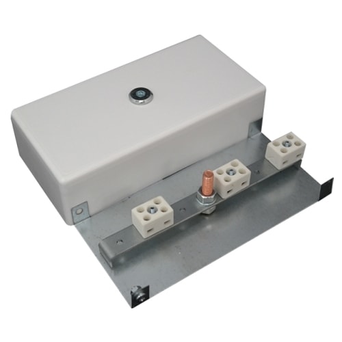 Внутри корпуса располагаются керамические клеммные колодки, обеспечивающие соединение "под винт", и зажим заземления. Для крепления к элементам конструкций в днище корпуса предусмотрены отверстия для винтов или саморезов.