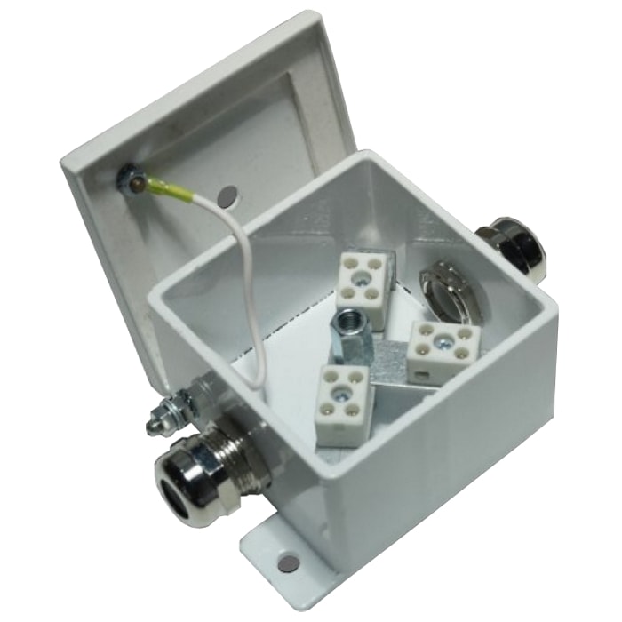 Внутри корпуса установлены керамические клеммные колодки, обеспечивающие соединение "под винт", и зажим заземления. Крышка соединяется проводом заземления с зажимом «РЕ» внутри корпуса.