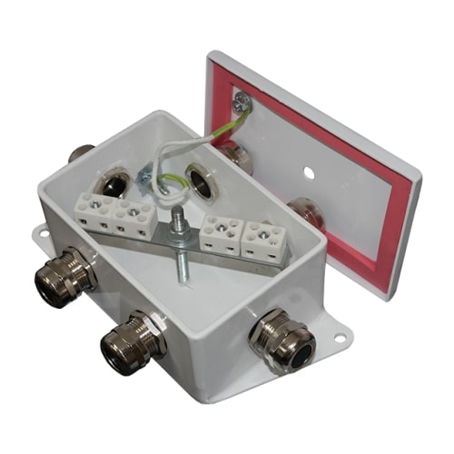 Внутри корпуса установлены керамические клеммные колодки, обеспечивающие соединение "под винт", и зажим заземления. Крышка соединяется проводом заземления с зажимом «РЕ» внутри корпуса.