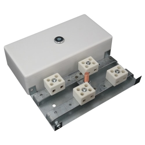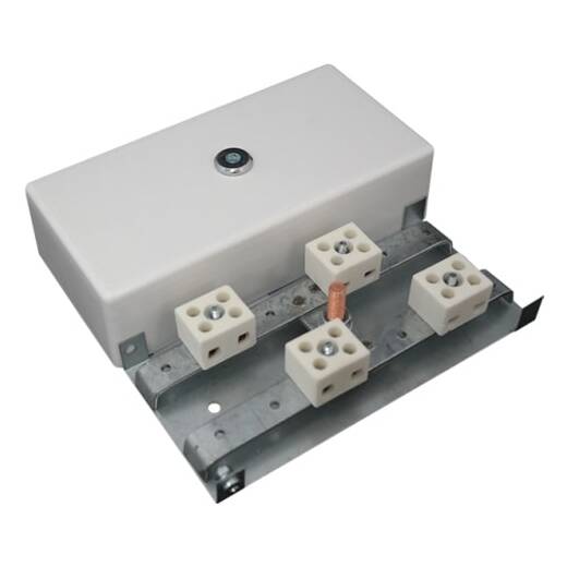 Внутри корпуса располагаются керамические клеммные колодки, обеспечивающие соединение "под винт", и зажим заземления. Для крепления к элементам конструкций в днище корпуса предусмотрены отверстия для винтов или саморезов.