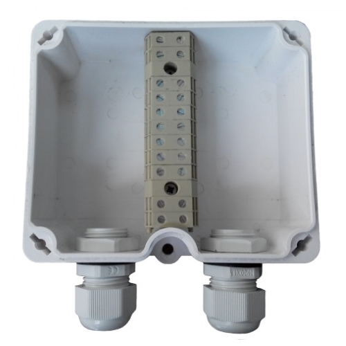 Конструктивно КСП выполнена в корпусе из пластика, устойчивого к естественному ультрафиолетовому излучению. Корпус коробки оборудован герметичными кабельными вводами для подведения проводников диаметром от 6 до 12 мм. Внутри корпуса изделия расположены винтовые клеммники РМ2 количеством 11 шт для подключения соединяемых проводников до 4 мм2 (AWG 22-10), напряжение 400 В, ток 30 А.