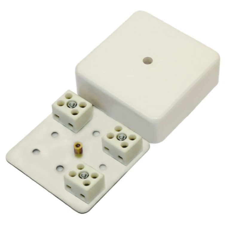 Конструктивно коробка представляет собой металлическое основание с 6 керамическими клеммными колодками. Металлическое основание и клеммные колодки закрываются декоративной крышкой из пластмассы, не распространяющей горение.