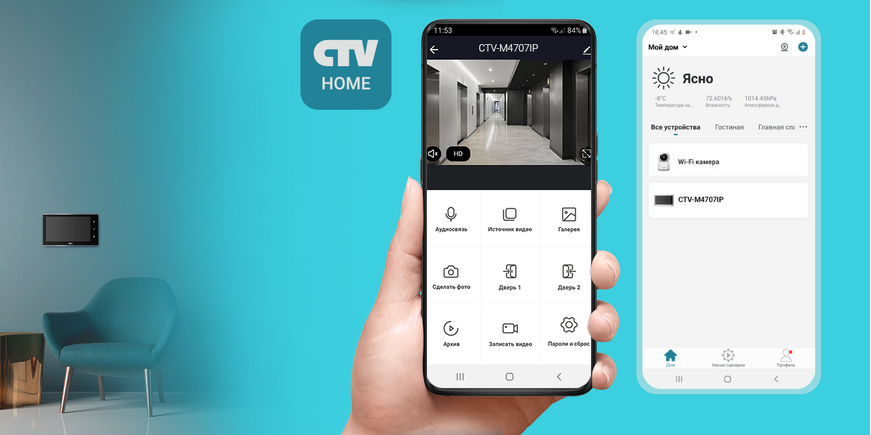 Теперь видеодомофон CTV-M4707IP доступен в новой версии для работы с мобильным приложением CTV Home, которое обеспечивает удаленный доступ к смартфону.