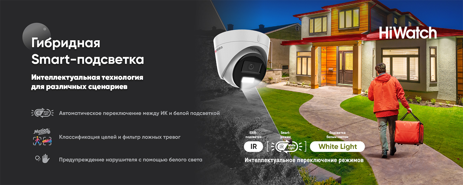Представляем решение от HiWatch, с которым больше не нужно выбирать тип подсветки: IP-камеры DS-I25xM/DS-I45xM и TVI-камеры DS-T2xxA, DS-T220A, DS-T5xxA, DS-T520A.