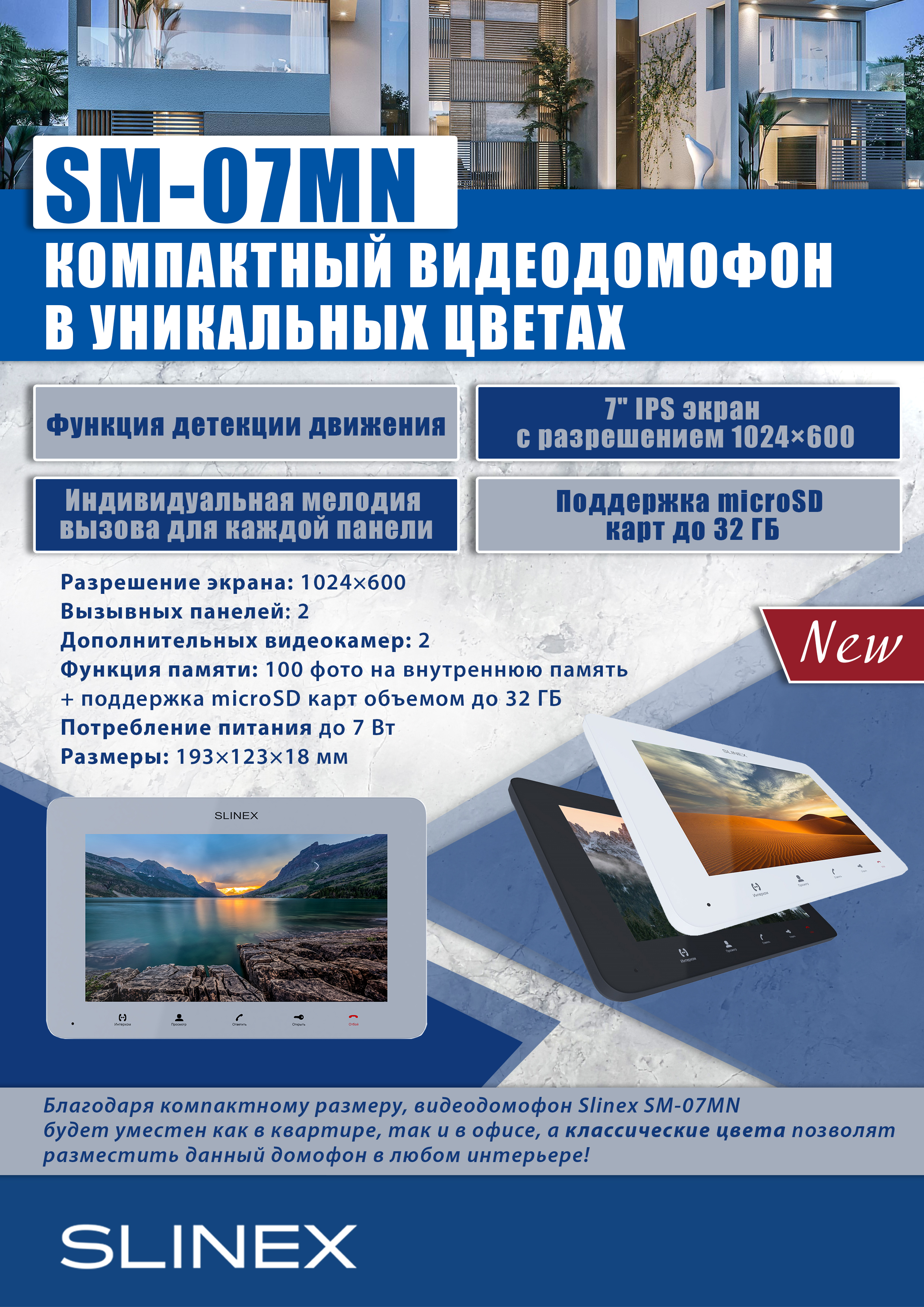 Компактный домофон SM-07MN в уникальных цветах