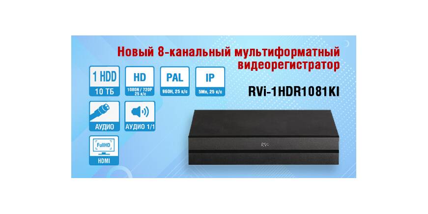 Гаджеты Компания RVi Group информирует о поступлении в продажу 8-канального мультиформатного видеорегистратора нового поколения RVi-1HDR1081KI.