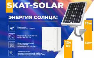 Skat-Solar - энергия солнца! Нужно организовать видеонаблюдение на неэлектрофицированном объекте? Необходимо обеспечить освещение территории, но нет линии электропередач? Нужно питать аппаратуру связи на удаленном объекте? Для решения этих и подобных задач компания БАСТИОН выпускает автономный источник питания SKAT-SOLAR.12DC-5,0 исп.5 ....