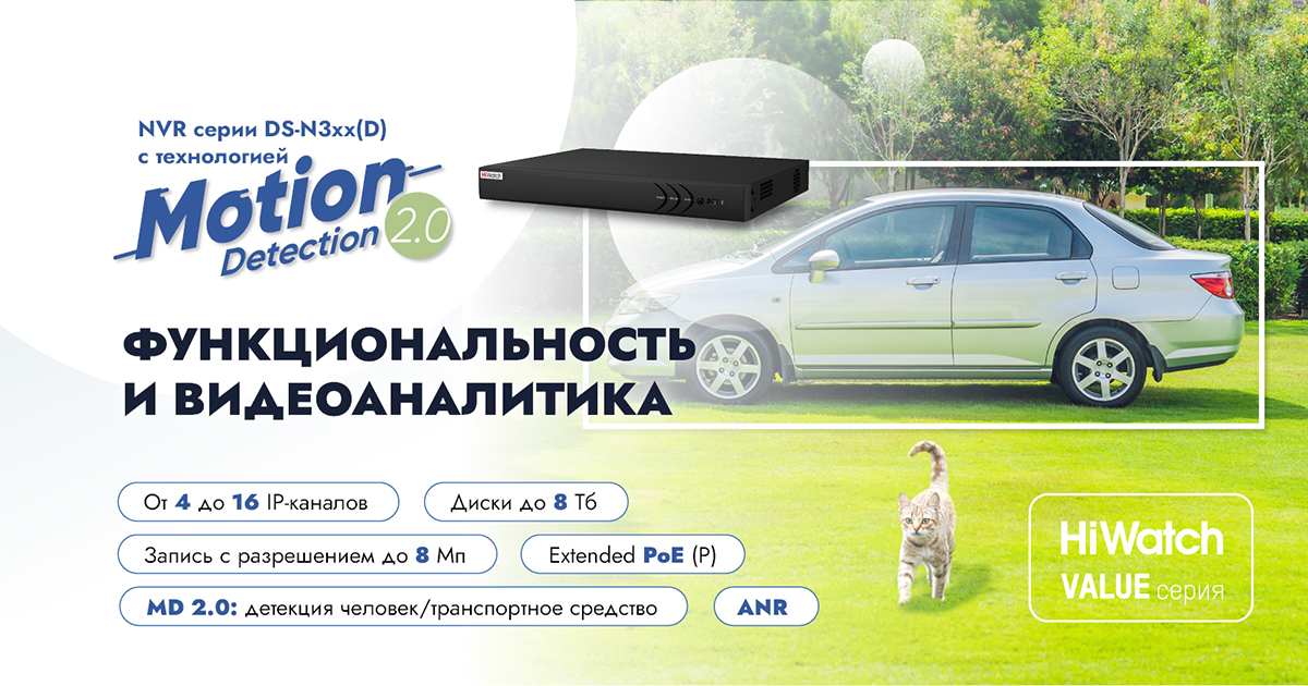 Вся линейка сетевых видеорегистраторов HiWatch версии DS-N3xx(D) теперь поддерживает технологию интеллектуальной детекции движения с классификацией объектов (Motion Detection 2.0) и работу со smart-аналитикой.