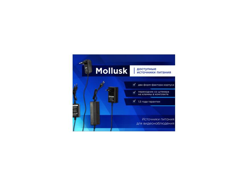 Бюджетные не бесперебойные источники питания 12 В - Mollusk VR и VRK предназначены для организации бюджетного видеонаблюдения. Источники защищены от перегрузки и короткого замыкания на выходе.