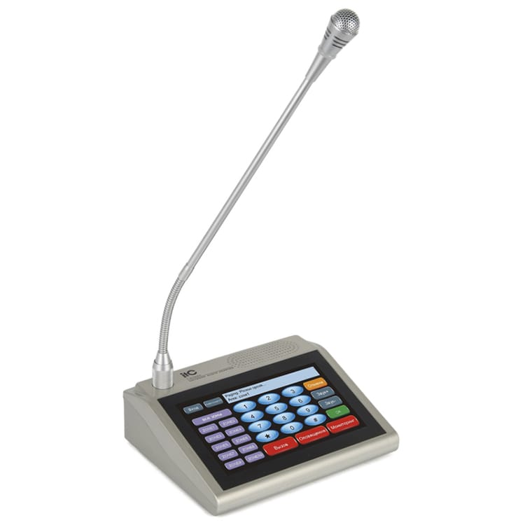 IP-A6702A – микрофонная консоль для построения систем аварийного оповещения и музыкальной трансляции на базе дополнительного оборудования. Работает по ЛВС и обеспечивает дуплексную (двухстороннюю) связь с другими переговорными устройствами IP системы, а также приоритетное (одностороннее) оповещение по выбранным направления. Консоль совмещает в себе функции селектора зон, микрофона, усилителя со встроенным 2 Вт динамиком и мониторинговое устройство.