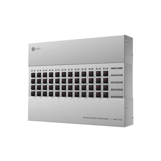 МЕТА 7452 – щит выходной коммутации для работы в составе комплексов аппаратуры сетей проводного трансляционного вещания и оповещения. Использование щита выходной коммутации предусматривается совместно с блоком контроля линий МЕТА 9001.