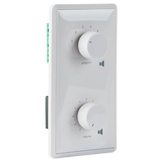 Применяется для раздельного регулирования уровня громкости и раздельного выбора звуковых каналов для громкоговорителей подключенных к линии оповещения. У регулятора 10 ступеней регулировки громкости с шагом +3 дБ, а также дополнительная ступень, выключающая звуковую трансляцию. Селектор программ позволяет подключать до 6 каналов (программ), один из которых аварийный.