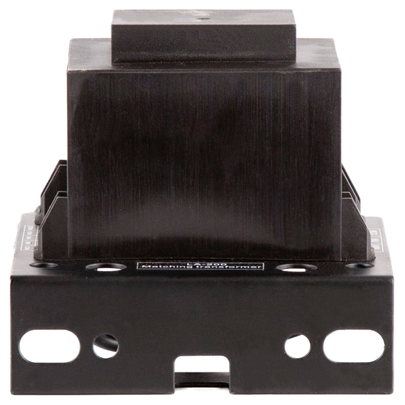 LA-200 Transformer – cогласующий трансформатор броневого типа, включается в разрыв между трансляционной линией и линейным массивом и применяется для понижения высоковольтного звукового сигнала в линии трансляции до уровня, требуемого для заданной мощности и импеданса. Предназначен для подключения линейного массива ROXTON LA-200 к высоковольтной трансляционной линии.