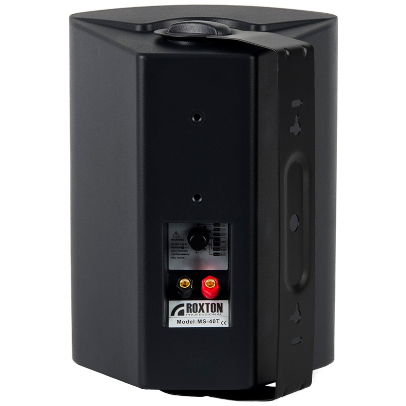 Выполненная из черного ABC-пластика, она имеет приятный внешний вид, что позволяет применять её в инсталляциях с повышенными требованиями к внешнему виду оборудования. Также она оборудована специальным П-образным металлический кронштейном, значительно облегчающим монтаж на различные поверхности. Встроенный трансформатор с отводами позволяет устанавливать значения мощности 2.5, 5, 10, 20 или 40 Вт. Помимо этого, задняя панель акустической системы имеет специальный переключатель, с помощью которого можно установить необходимый режим работы (низкоомный или трансформаторный) и выходную мощность акустической системы.
