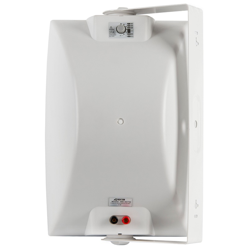 Выполненная из белого ABC-пластика, она имеет приятный внешний вид, что позволяет применять её в инсталляциях с повышенными требованиями к внешнему виду оборудования. Также она оборудована специальным П-образным металлический кронштейном, значительно облегчающим монтаж на различные поверхности. Встроенный трансформатор с отводами позволяет устанавливать значения мощности 5, 10, 20, 40 или 80 Вт. Помимо этого, задняя панель акустической системы имеет специальный переключатель, с помощью которого можно установить необходимый режим работы (низкоомный или трансформаторный) и выходную мощность акустической системы.