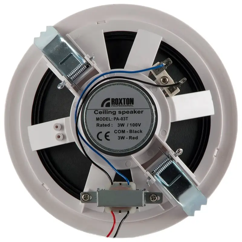 PA-03T – потолочный громкоговоритель мощностью 3Вт сочетает в себе хорошие акустические характеристики и удобство монтажа, что делает его незаменимым при построении систем речевого оповещения и музыкальной трансляции в офисных, торговых и других помещениях общественного назначения.
