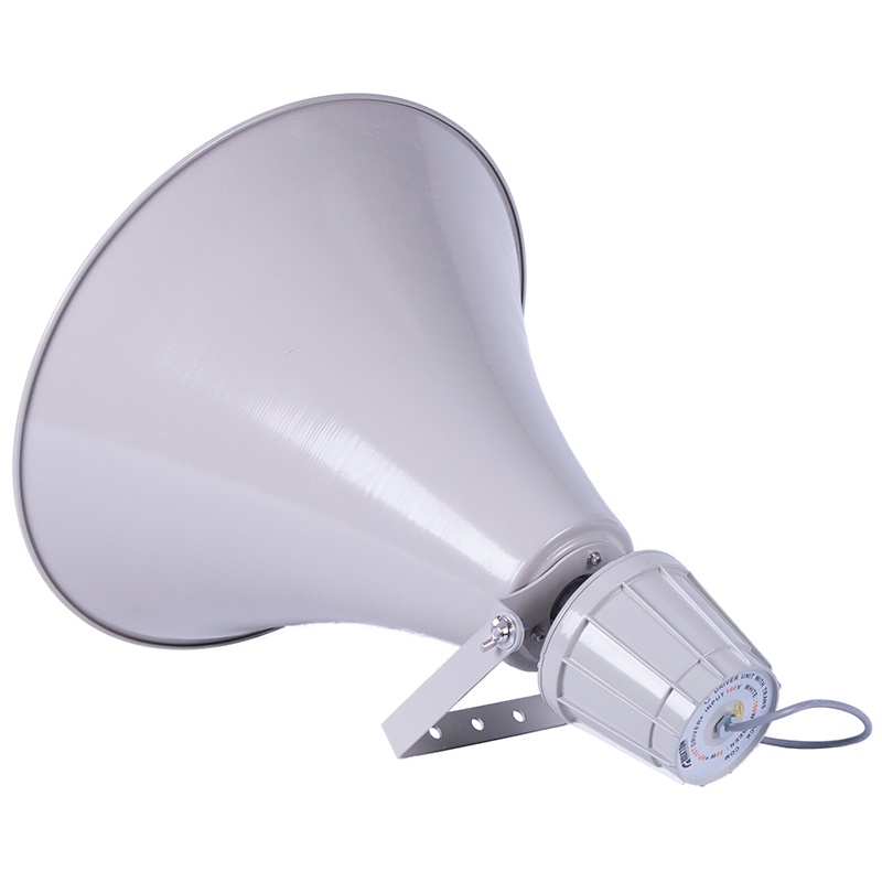 Выполненный из всепогодного ABC-пластика, громкоговоритель обеспечивает высокое звуковое давление вкупе с высокой направленностью звукового излучения. Громкоговоритель оборудован специальным П-образным металлический кронштейном, значительно облегчающим монтаж на различные поверхности. Встроенный трансформатор с отводами позволяет устанавливать значения мощности 50 или 100 Вт.
