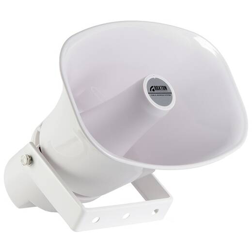 Выполненный из всепогодного ABC-пластика, громкоговоритель обеспечивает высокое звуковое давление вкупе с высокой направленностью звукового излучения. Громкоговоритель оборудован специальным П-образным металлический кронштейном, значительно облегчающим монтаж на различные поверхности. Встроенный трансформатор с отводами позволяет устанавливать значения мощности 15 или 30 Вт.