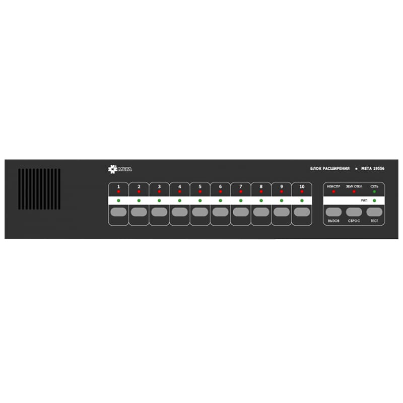 МЕТА 19556 – блок расширения для установки в 19” шкаф RACK, предназначен для расширения возможностей блока связи МЕТА 19555 по количеству подключаемых абонентских устройств.