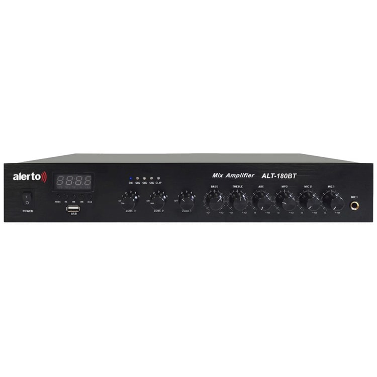 ALT-180BT – настольный трансляционный микшер-усилитель с тремя зонами трансляции. В каждой зоне независимая регулировка громкости.