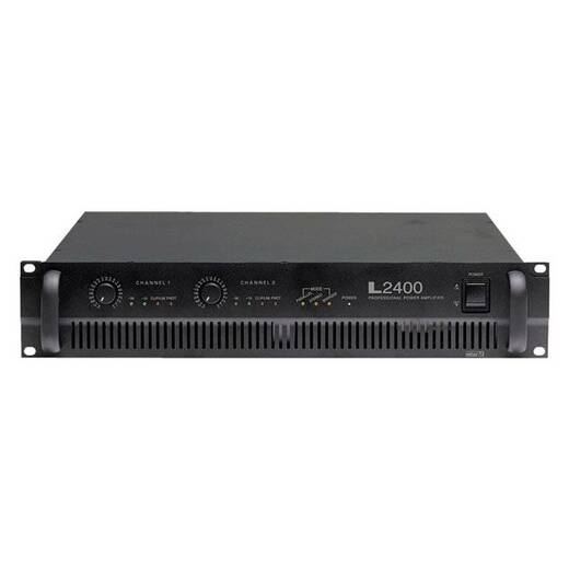 L-2400 – двухканальный усилитель AB класса с выходной мощностью 1200Вт на каждый канал, работает при нагрузке 2Ом. Усилитель сочетает в себе низкий уровень нелинейных искажений и большую выходную мощность. В каждом канале присутствует фильтр для отсечения ВЧ помех и отключаемый clip-лимитер. Работает усилитель в режимах: стерео, параллельный и мостовой режим. Хорошему звучанию басов способствует высокий демпинг-фактор (более 400). Выходы выполнены в виде Speakon и под винт. Усилитель защищен от короткого замыкания, высокочастотной перегрузки и высокой температуры. Охлаждение осуществляется через вентилятор с автоматической регулировкой скорости вращения. Компактное исполнение позволяет поместить усилитель в 2 секции (2U) 19" стойки.