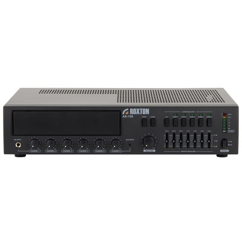 AX-120 – зональный усилитель класса D мощностью 120Вт позволяет строить распределённые системы речевого оповещения и музыкальной трансляции. В первую очередь он предназначен для озвучивания помещений, разбитых на несколько зон оповещения. Пять линейных и семь микрофонных аудиовходов, с индивидуальными регуляторами громкости, фантомным питанием и тремя уровнями приоритетов, дают широкий выбор источников аудиосигнала, а дополнительный низкоомный аудиовыход позволяет подключать к усилителю акустические системы бытового и профессионального уровней.