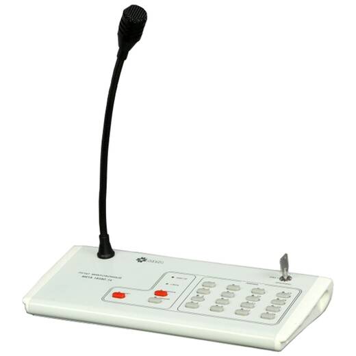 Удаление микрофонного пульта от прибора оповещения до 500 метров. Предназначен для работы на столе.