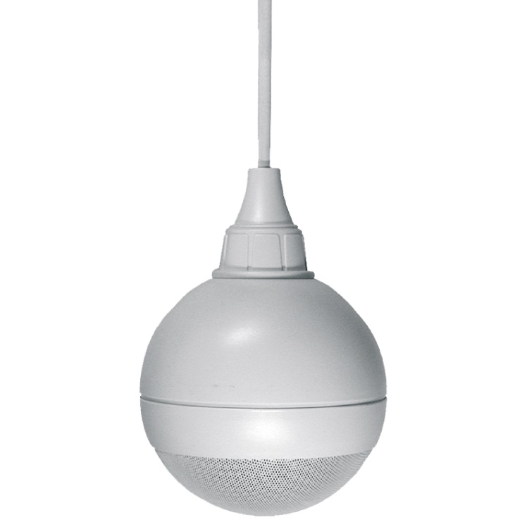 Подвесной речевой оповещатель, оснащен широкоформатным 4" динамиком. Оригинальный дизайн подходит для использования в помещениях с высоким потолком.