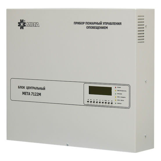 МЕТА 7122 М – центральный блок системы речевого оповещения. Предназначен для трансляции сигналов оповещения звуковой частоты в составе пожарных систем оповещения и управления эвакуацией на крупных промышленных предприятиях, торговых, медицинских и спортивных комплексах, в гражданских зданиях, сооружениях и различных учреждениях с массовым пребыванием людей. МЕТА 7122М является основным блоком составе прибора пожарного управления оповещением.