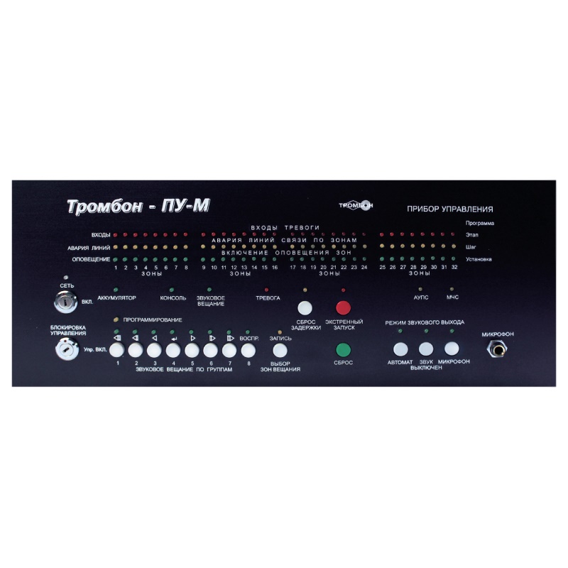 ПУ-М-32 – прибор предназначен для построения систем оповещения 3, 4 или 5 типов с возможностью реализации различных сценариев эвакуации. Прибор нового поколения, созданный на современной элементной базе. Имеет гибкие настройки алгоритмов оповещения, интеллектуальную систему контроля всех линий связи, порт для подключения удаленных консолей и интерфейс для подключения к ПК и сопряжения с системами безопасности «Орион» и «Интеллект +». Прибор имеет гибкие настройки режимов звукового вещания.