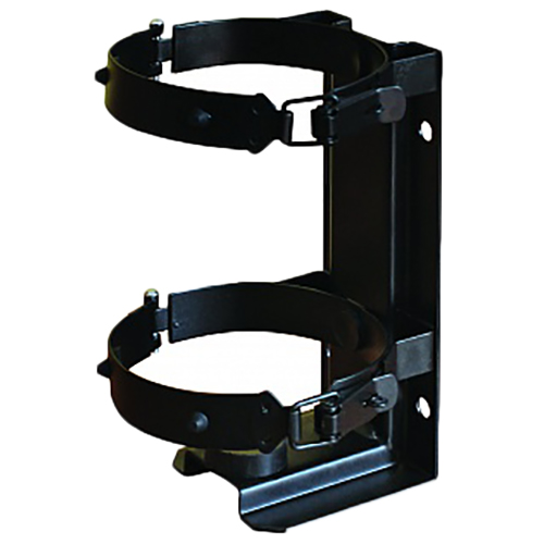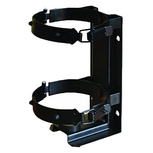 КТХ-1+ – кронштейн транспортный с двумя металлическими хомутами и резиновыми демпферами можно использовать для всех типов огнетушителей (порошковых, углекислотных, воздушно-пенных). Конструкция обеспечивает надежную фиксацию огнетушителя при транспортной тряске.