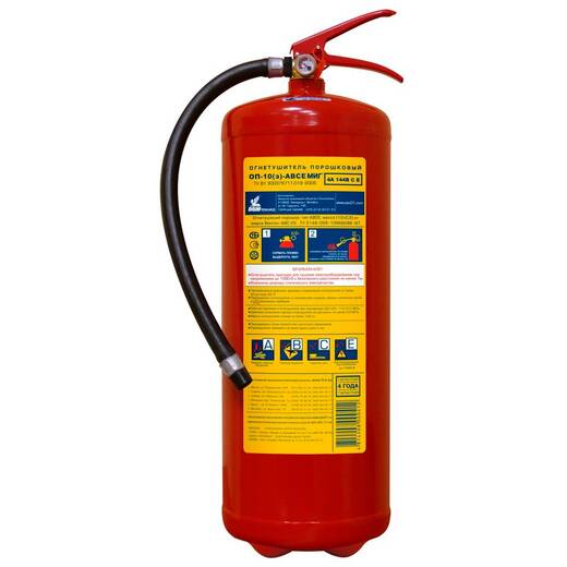 ОП-10(з)-АВСЕ МИГ – огнетушитель порошковый закачной предназначен для оснащения органов и подразделений по чрезвычайным ситуациям, защиты объектов народного хозяйства, транспортных средств, а также для применения в бытовых условиях в качестве первичного средства тушения пожаров классов:
