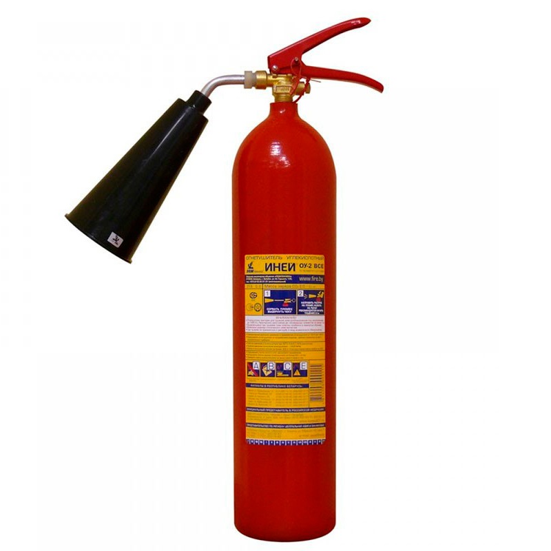 ОУ-2 ИНЕЙ ВСЕ – огнетушитель углекислотный предназначен для оснащения органов и подразделений по чрезвычайным ситуациям, защиты объектов народного хозяйства, транспортных средств, а также для применения в бытовых условиях в качестве первичного средства тушения пожаров классов:
