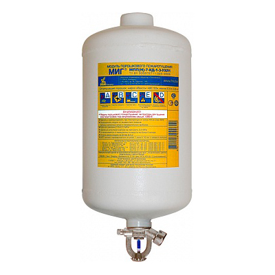 МПП-7/141 МИГ – модуль порошкового пожаротушения для хранения и подачи огнетушащего вещества в защищаемый объект при тушении пожаров класса А, В, С и электроустановок под напряжением до 1000 В.