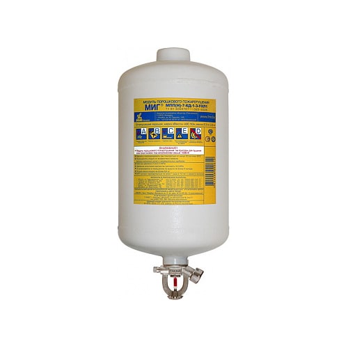 МПП-7/68 МИГ – модуль порошкового пожаротушения для хранения и подачи огнетушащего вещества в защищаемый объект при тушении пожаров класса А, В, С и электроустановок под напряжением до 1000 В.