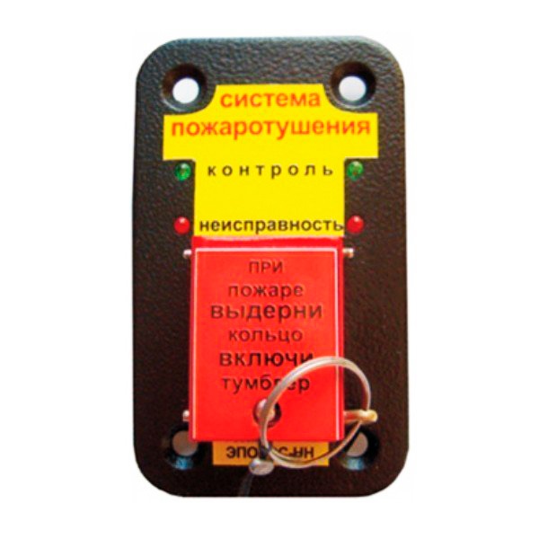 При возникновении пожара необходимо дернуть за кольцо и включить тумблер.