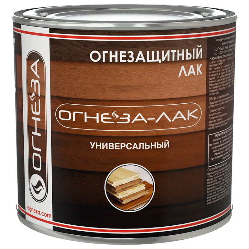 ОГНЕЗА-ЛАК – огнезащитный лак на органической основе. Предназначен для защиты деревянных конструкций и изделий от воздействия огня. Лак создает износостойкое покрытие. Применяется для конструкций внутри помещений и на открытом воздухе. Температура эксплуатации - от -40 до +60°С. Образует декоративное глянцевое или матовое прозрачное покрытие. Под защитой лака горючие деревянные конструкции становятся трудногорючими и трудновоспламеняемыми. Показатель класса пожарной опасности материала – КМ1.