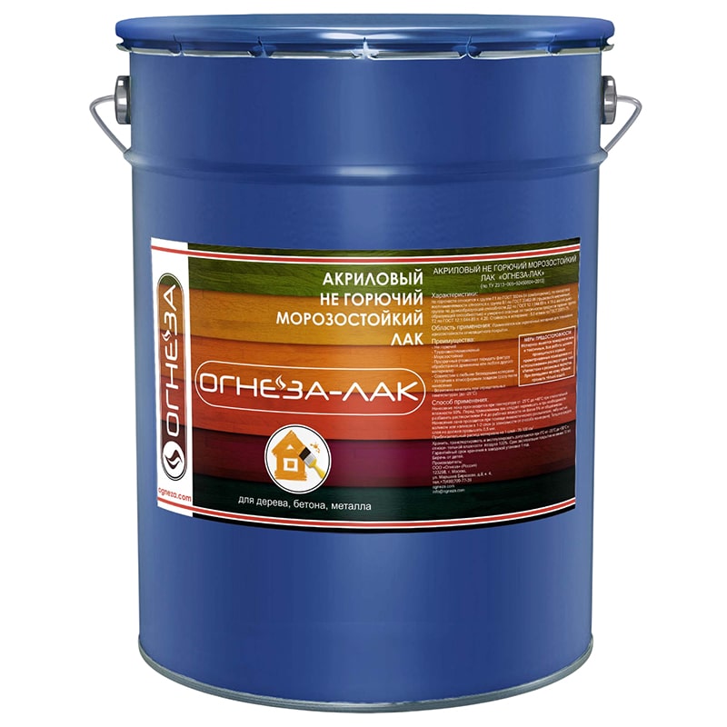 ОГНЕЗА-ЛАК-ОД – акриловый морозостойкий лак, прозрачный бесцветный или светло-коричневый раствор на основе смеси органических растворителей для деревянных и металлических поверхностей. После высыхания, покрытие формирует декоративную глянцевую прозрачную пленку, с повышенной стойкостью к истиранию, низкой горючестью и малым дымовыделением. Лак используется как в сочетании с огнезащитными составами, так и отдельно. Применяется на строительных конструкциях из кирпича, бетона, в том числе и оштукатуренных поверхностях, для улучшения огнезащитных свойств и внешнего вида. На деревянных поверхностях, в том числе фанеры, ДСП, ЦСП и ДВП (после проверки на совместимость и адгезию) для снижения пожарной опасности, в качестве отделочного материала.