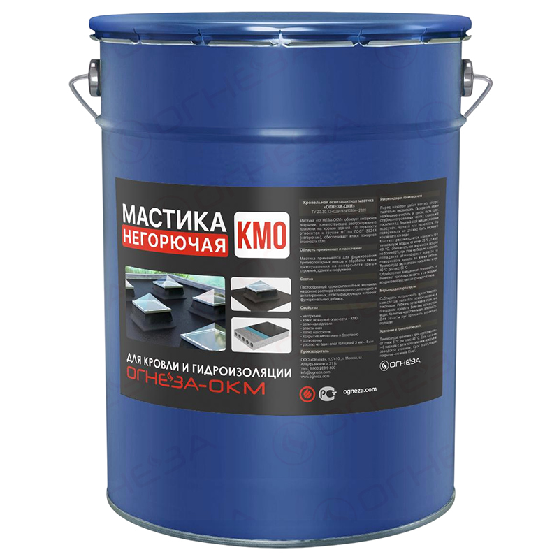 ОГНЕЗА-ОКМ – огнезащитная мастика препятствует распространению пламени на кровле зданий. По горючести относится к группе НГ по ГОСТ 30244 (негорючие), обеспечивает класс пожарной опасности КМ0.
