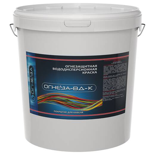 ОГНЕЗА-ВД-К – огнезащитная краска применяется для защиты разных типов кабелей от распространения огня, имеющих полимерные и резиновые оболочки. Кроме того, благодаря специальным добавкам, эффективно защищает кабель от повреждения грызунами.