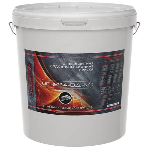 ОГНЕЗА-ВД-М – огнезащитная краска на водной основе предназначена для повышения предела огнестойкости металлоконструкций на всех видах объектов промышленного и гражданского назначения, с повышенными требованиями по взрыво-пожарной безопасности.