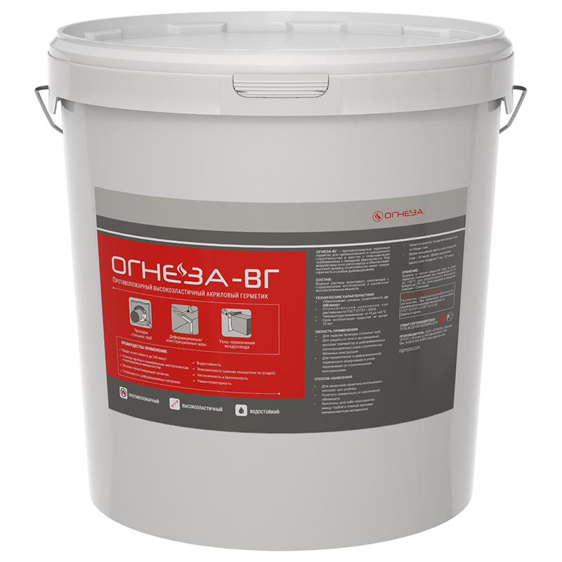 ОГНЕЗА-ВГ – противопожарный высокоэластичный водостойкий герметик на акриловой основе предназначен для заделки деформационных швов, универсальных проходок стальных труб и вентиляционных проходок. При воздействии огня высокоэластичный акриловый герметик уплотняется и обеспечивает высокий уровень огнестойкости.