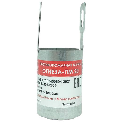 ОГНЕЗА ПМ-20 – муфта противопожарная для пластиковых труб наружным диаметром не более 20 мм. Предназначена для обеспечения огнестойкости конструкций узлов прокладки инженерных коммуникаций (систем водоснабжения, подачи воздуха и отопления).