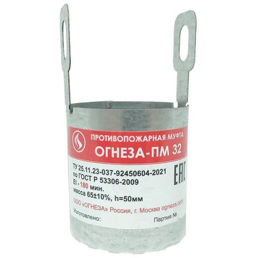 ОГНЕЗА ПМ-32 – муфта противопожарная для пластиковых труб наружным диаметром не более 32 мм. Предназначена для обеспечения огнестойкости конструкций узлов прокладки инженерных коммуникаций (систем водоснабжения, подачи воздуха и отопления).