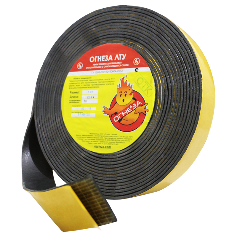 ОГНЕЗА-ЛТУ 2х50 – термоуплотнительная лента с самоклеящимся слоем - эффективный противопожарный уплотнитель, применяется для заполнения зазоров и повышения огнестойкости противопожарных дверей, ворот, люков, противодымных клапанов, лифтовых шахт, фланцевых соединений воздуховодов, огнестойких сейфов и прочее.