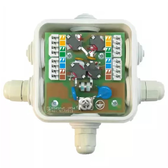 РГ4GPoE IP54 – устройство защиты предназначено для защиты порта Ethernet (10/100/1000Base-TX) оборудования передачи данных от опасных перенапряжений, возникающих в кабельной сети в результате грозовых разрядов и бросков напряжения электросети. Устройство предназначено для применения на сетях, использующих технологию PoE, описанную в стандарте IEEE802.3af, а также в более поздней версии стандарта IEEE802.3at, который регламентирует более высокие мощности, передаваемые по кабелю Ethernet (High PoE).