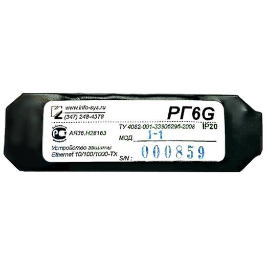 РГ6G Исп.1 (female-female) – грозозащита Ethernet 1G, без заземления. Устройство защищено термоусадкой. Высоковольтная трансформаторная развязка препятствует попаданию на вход Ethernet порта защищаемого оборудования опасных напряжений от грозовых разрядов, а также от бросков напряжения электрической сети, которые могут возникнуть на втором конце кабельного сегмента в результате индустриальных помех различного происхождения (включение/выключение мощной нагрузки, электросварочные работы, нарушение контакта в электрических соединителях и т.п.).