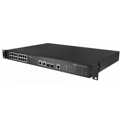 - порты: 16×RJ-45 10/100 Мбит/с (PoE), 2×RJ-45 10/100/1000 Мбит/с (uplink)/SFP 1000 Мбит/с (uplink);