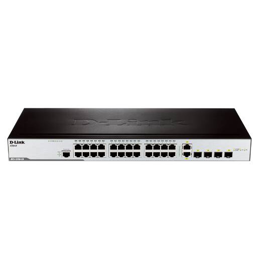 DES-3200-28/C1A – управляемый коммутатор 2 уровня с 24 портами 10/100Base-TX, 2 портами 100/1000Base-X SFP и 2 комбо-портами 100/1000Base-T/SFP.
